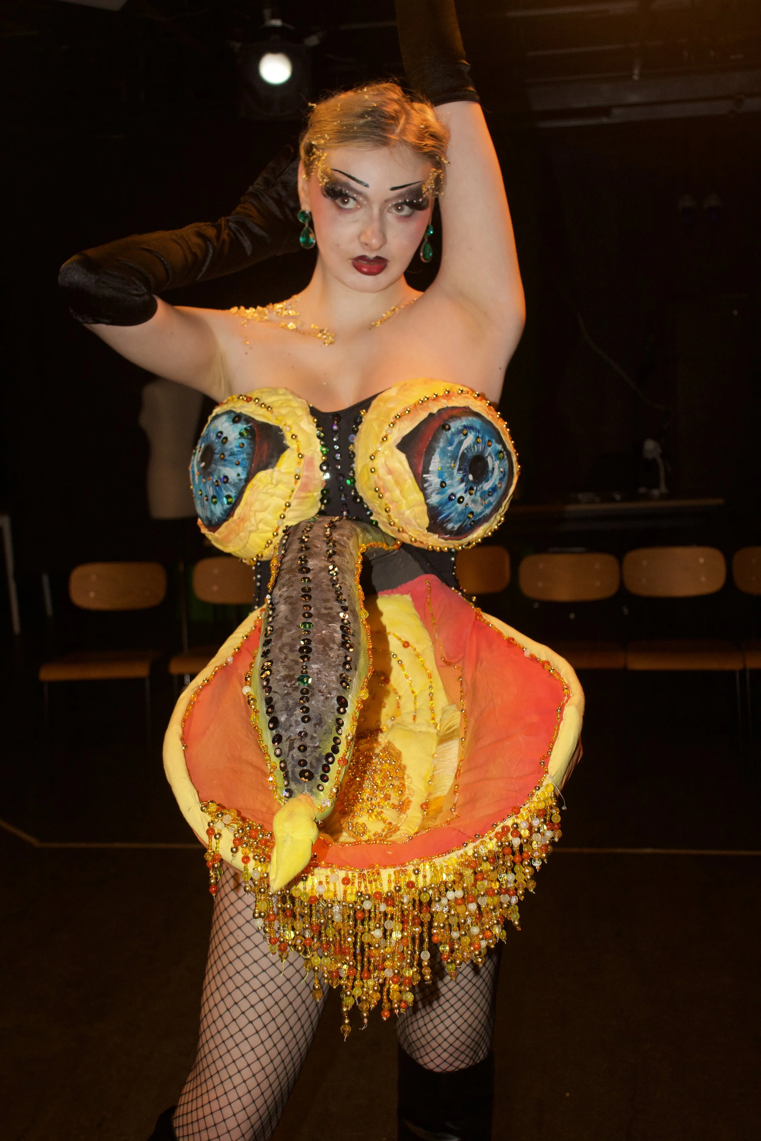 Skellia- The Feast November- January 2024/25 Intestines made by ig @moothsily Prosthetics by @moothsily and @scrim.and.prop_er Fish mask: @scrim.and.prop_er Ears & gills: @moothsily Webbed hands: @moothsily @scrim.and.prop_er Costume made and designed by me Character design @moothsily @scrim.and.prop_er Performer: @moothsily